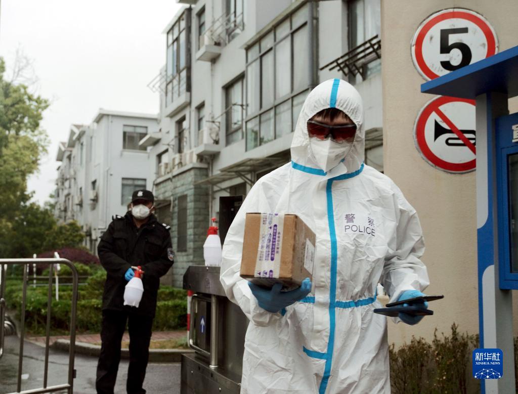 4月16日,上海市公安局經(jīng)偵總隊增援北蔡派出所民警為轄區內一名癌癥患者取送抗癌藥物。新華社發(fā)