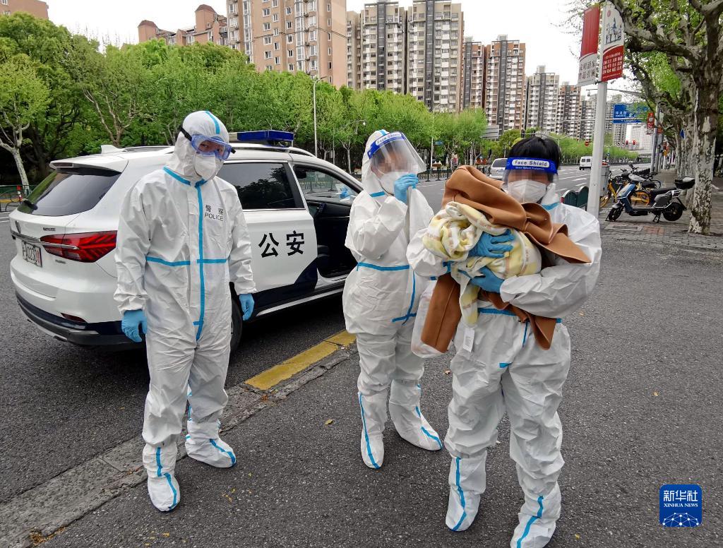 4月16日,上海市公安局經(jīng)偵總隊增援北蔡派出所民警護送患兒和家屬前往上海兒童醫學(xué)中心進(jìn)行救治。新華社發(fā)