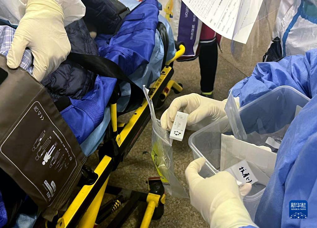 4月16日,復旦大學(xué)附屬中山醫院急診大廳外,醫護人員為患者進(jìn)行抗原檢測。新華社記者 袁全 攝
