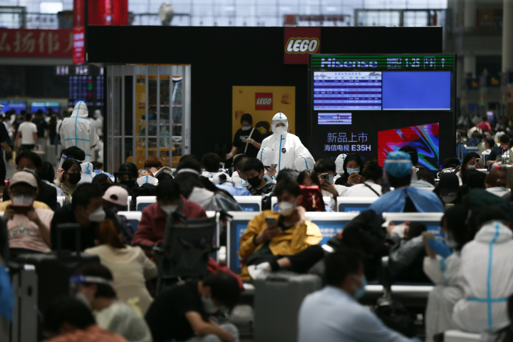 為了維持旅客有序進(jìn)站乘車(chē)秩序,有關(guān)部門(mén)在上海虹橋火車(chē)站的南、西廣場(chǎng)各設置多個(gè)檢測點(diǎn),符合離滬條件的旅客才能夠進(jìn)站乘車(chē)。記者采訪(fǎng)發(fā)現,隨著(zhù)部分市內交通恢復運行,部分旅客乘坐地鐵抵達上海虹橋火車(chē)站,從地鐵出站的旅客需要繞行至檢測點(diǎn),經(jīng)過(guò)車(chē)票、核酸、行程碼、抗原等信息檢查之后,符合條件才能夠進(jìn)站。