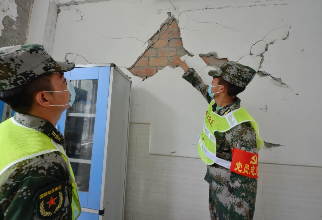 6月2日,蘆山縣武裝部組織民兵應急連對一棟建筑開(kāi)展隱患排查工作。 新華社記者 劉坤 攝