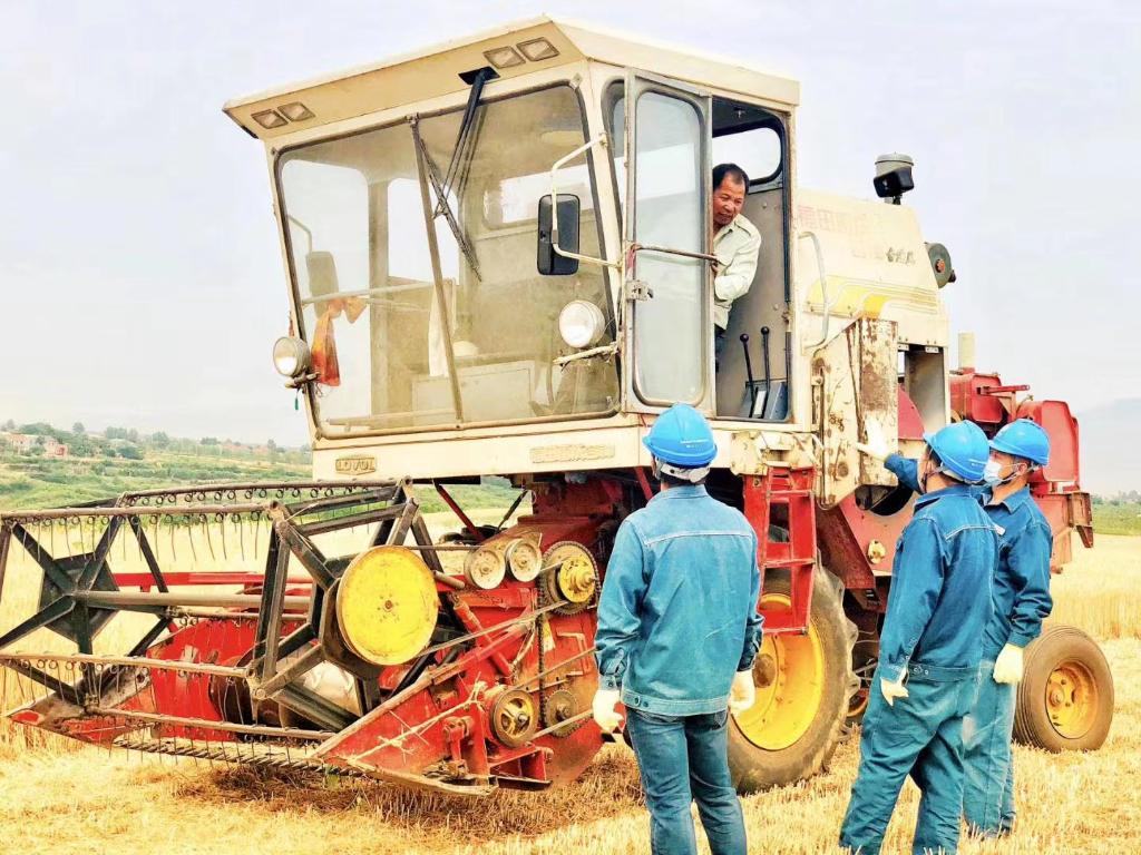 國家電網(wǎng)西安供電公司長(cháng)安分公司工作人員在麥田叮囑收割機手注意夏收安全。(受訪(fǎng)者供圖)
