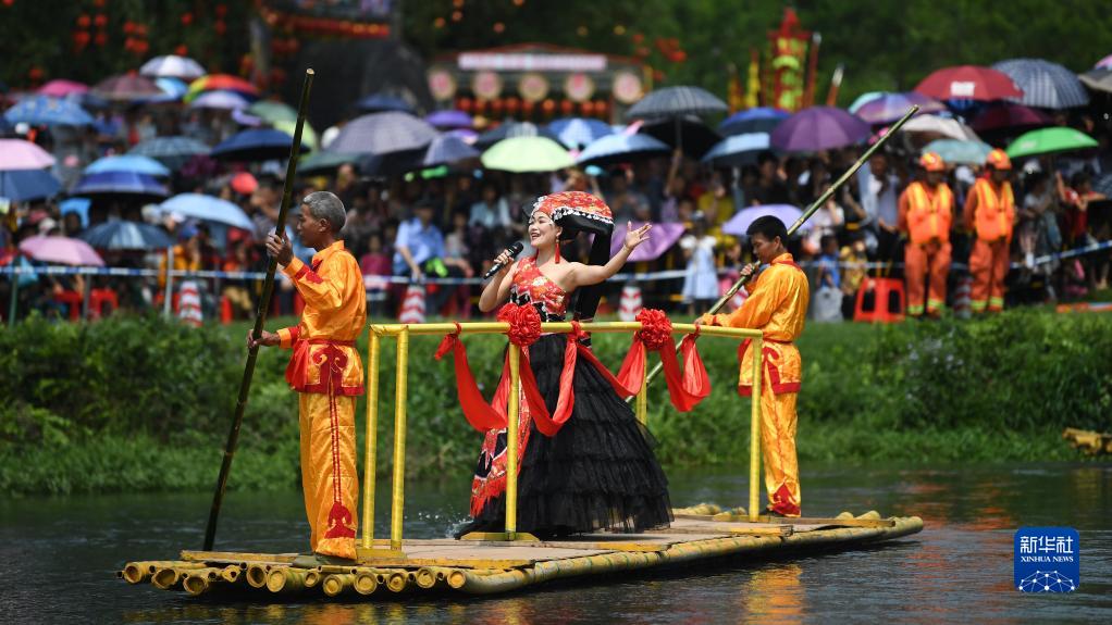 廣西欽州市的一名歌手在歡慶“三月三”活動(dòng)中演唱壯族傳統民歌(2019年4月7日攝)。新華社記者 張愛(ài)林 攝