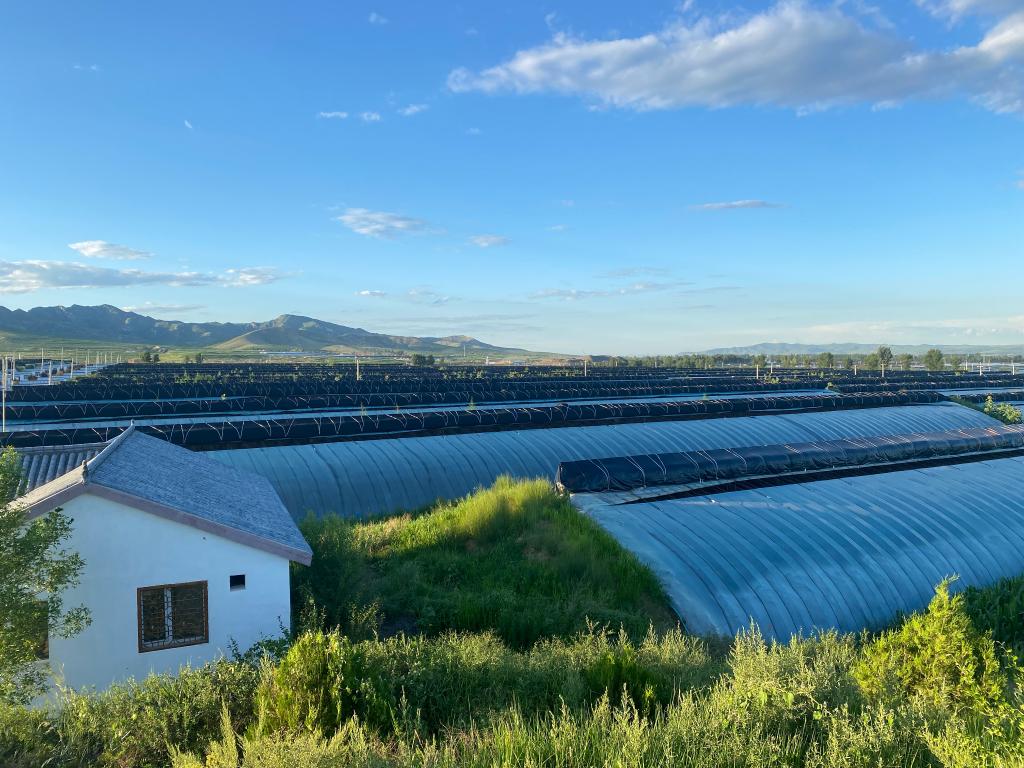 青色山巒下,千余棟大棚交錯坐落在萬(wàn)畝番茄園區內,剛剛采摘的新鮮番茄將從這里運送到北京、上海等地的餐桌或賣(mài)場(chǎng)。