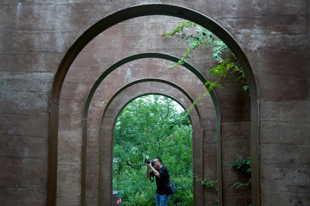 “我們的目標是把鄉村裝點(diǎn)得更像鄉村,把自然呵護得更加自然?!惫鶒?ài)和說(shuō)。如今,走遍花樹(shù)凹,最顯眼的莫過(guò)于隨處可見(jiàn)的大陶缸。以前用來(lái)汲水、炊煮、儲物的陶缸被注入新的生命,經(jīng)過(guò)巧妙排列組合,形成了一件件極具藝術(shù)性的陶藝景觀(guān)作品。從高處俯瞰,由6666口陶瓷大缸組成的大型裝置作品《容》,宛如美麗少女,佇立山谷之間。游客沿著(zhù)陶缸鋪設的“陶瓷之路”拾級而上,觀(guān)賞著(zhù)山間錯落有致的梯田和花谷。