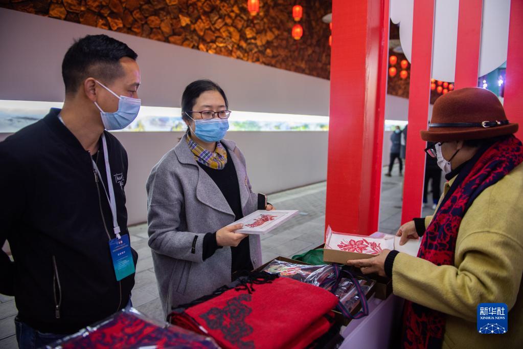 11月18日,在張家界大庸古城舉辦的湖南省首屆非遺博覽會(huì )上,市民在挑選商品。新華社記者陳思汗攝