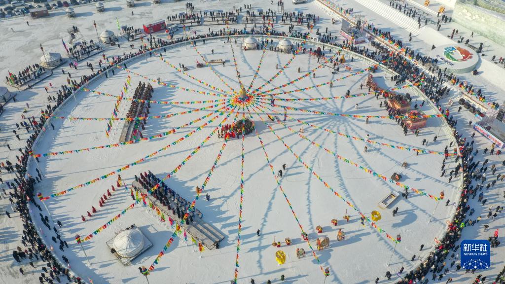 12月28日拍攝的查干湖第二十一屆冬捕節祭湖醒網(wǎng)儀式現場(chǎng)。新華社記者 許暢 攝