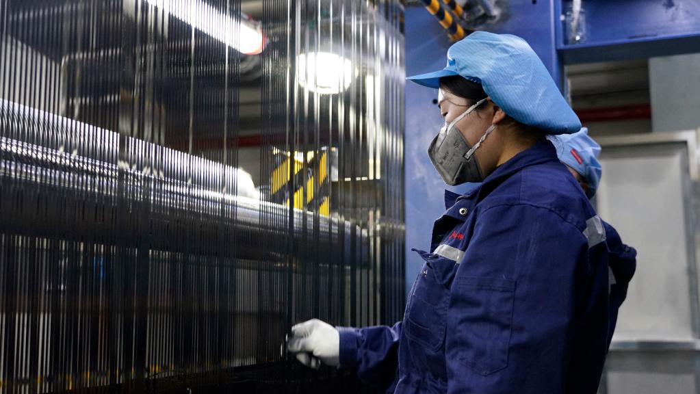 2月8日,在中復神鷹碳纖維西寧有限公司,工作人員正在檢查產(chǎn)品。新華社記者 陳杰 攝