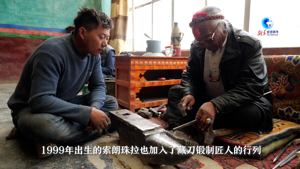 藏刀鍛制技藝傳承人次旦旺加的作坊里,兩個(gè)兒子尼瑪旺拉和次旦扎西協(xié)助次旦旺加認真完成著(zhù)每一個(gè)鍛造環(huán)節。次旦旺加的孫子,1999年出生的索朗珠拉也加入了藏刀鍛制匠人的行列,成為第八代傳承人。