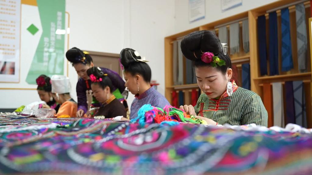 為了更好地保留與傳承苗族織錦技藝。2012年,甘小芝創(chuàng )辦了織錦刺繡企業(yè),不僅致力于傳承苗族織錦技藝,還積極培養傳承人。企業(yè)所生產(chǎn)的苗族手工藝品讓越來(lái)越多的繡娘能夠在家門(mén)口就業(yè)。