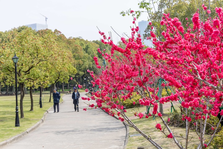 為了更好地傳承革命精神,延續文化傳統,讓桃花成為龍華地區標志性景觀(guān),上海市徐匯區綠化市容管理局特地在陵園周邊打造“桃花大道”,栽種了百余株不同品種的桃花。天氣漸暖,不少桃花已經(jīng)提前綻放,吸引了不少路人拍照留念。