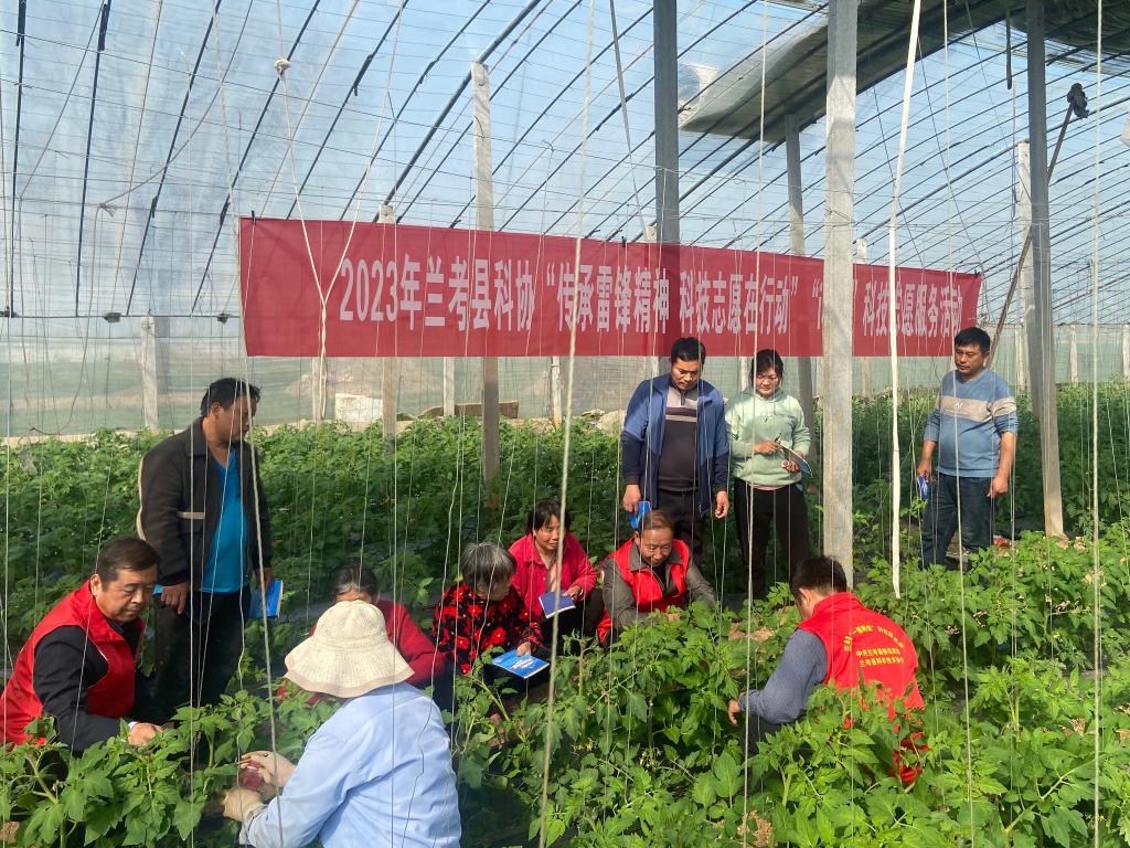 3月6日,蘭考縣“一懂兩愛(ài)”科技服務(wù)團的番茄專(zhuān)家現場(chǎng)幫助群眾解決技術(shù)問(wèn)題,并發(fā)放科普資料。(蘭考縣科協(xié)供圖)