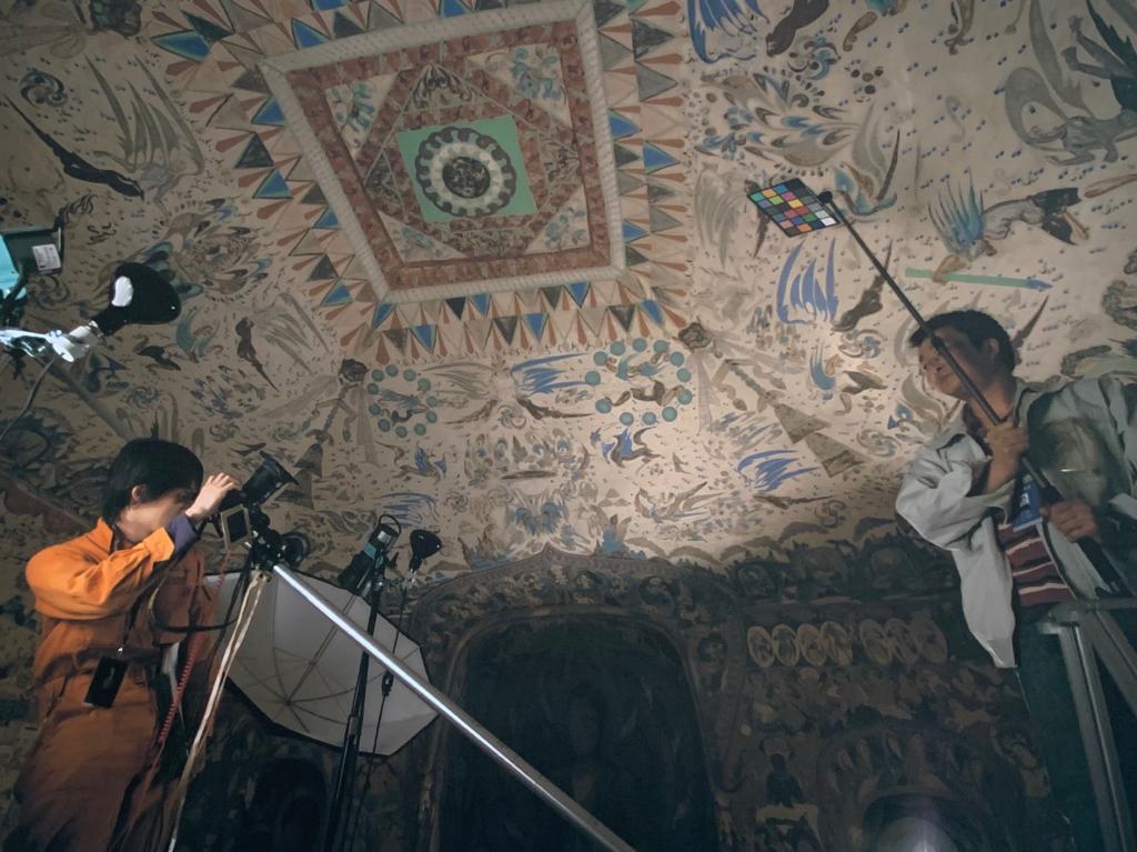 敦煌研究院與東京文化財研究所工作人員在莫高窟第285窟進(jìn)行攝影研究(資料照片)。敦煌研究院供圖