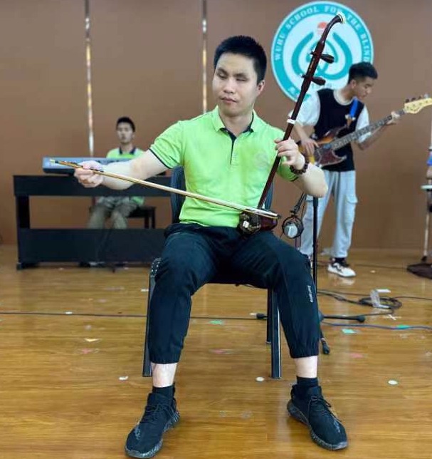 2021年,先天性失明的毛歡笑來(lái)到蕪湖市盲人學(xué)校后,沒(méi)有錯過(guò)黑眼睛樂(lè )隊在校園里的任何一次演出。
