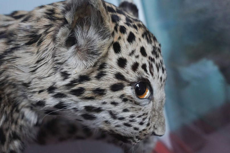 這是在北京百花山國家級自然保護區管理處陳列的一只上世紀末在該地區發(fā)現的華北豹的標本(2022年11月1日攝)。新華社記者 陳鐘昊 攝