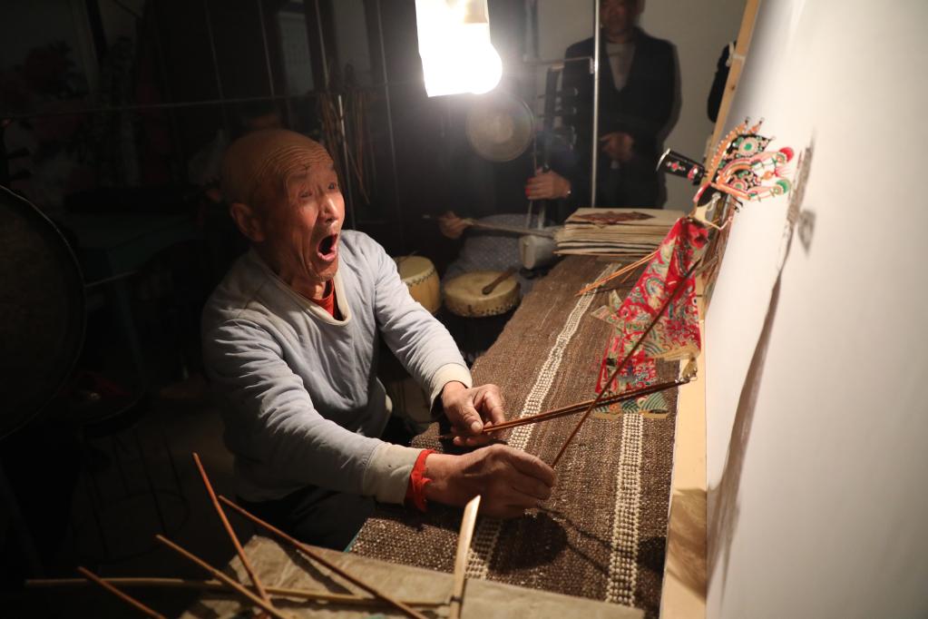 敬廷佑正在進(jìn)行皮影表演。新華社記者 張睿 攝