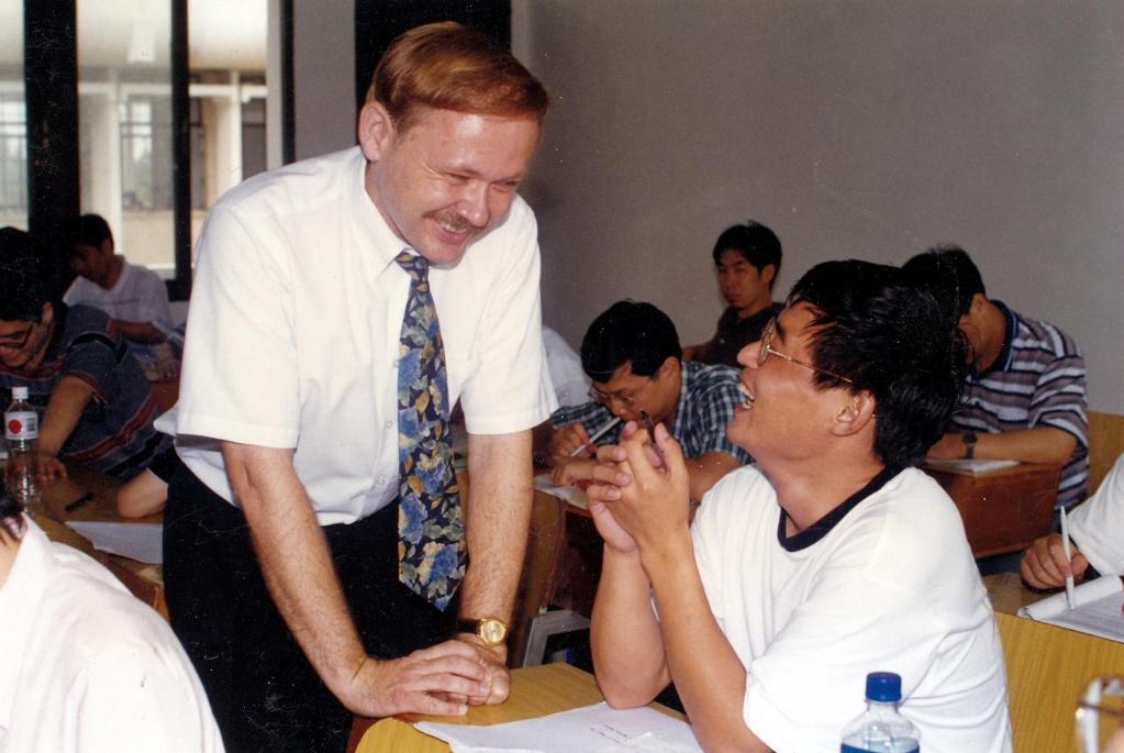 1990年,潘維廉在廈門(mén)大學(xué)管理學(xué)院為工商管理碩士上課。圖片均由被訪(fǎng)者潘維廉提供。