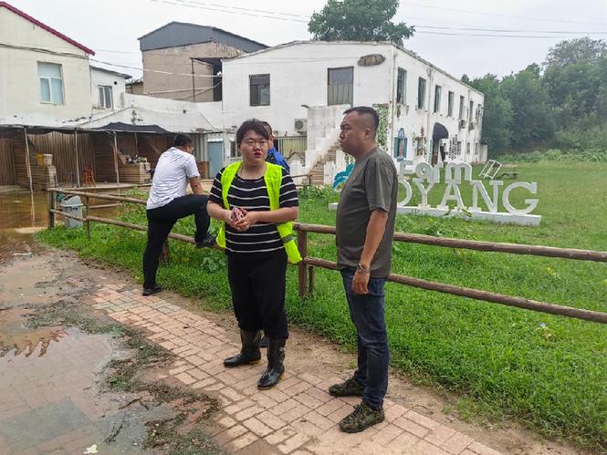 張譯夫(右二)在防汛檢查。(受訪(fǎng)者供圖)