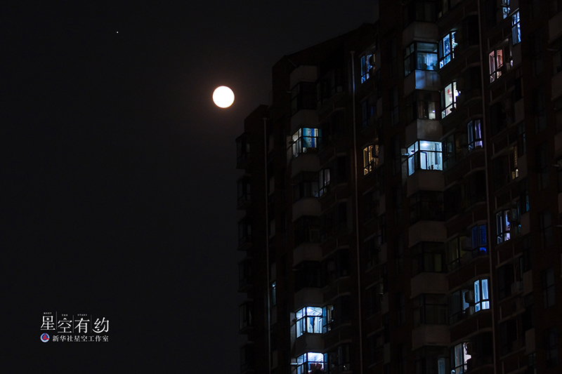 這是2022年9月11日晚在北京豐臺拍攝的木星(左上)和月亮。當晚,夜空上演木星合月天象。新華社記者張鋮 攝