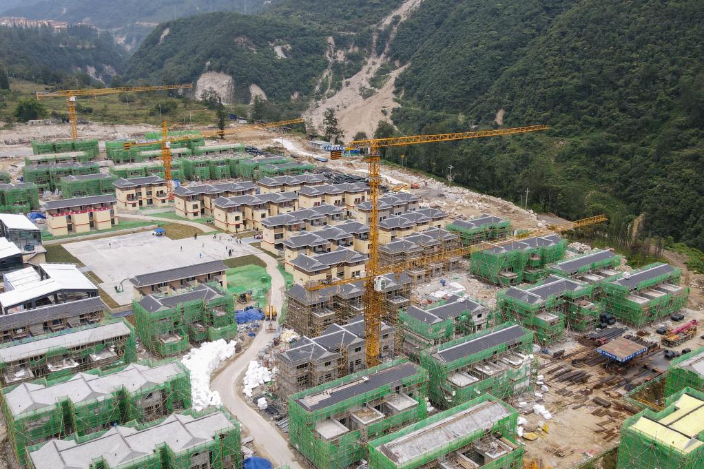 9月5日拍攝的位于甘孜州瀘定縣磨西鎮的幸福新村安置點(diǎn)(無(wú)人機照片)。新華社記者 胥冰潔 攝