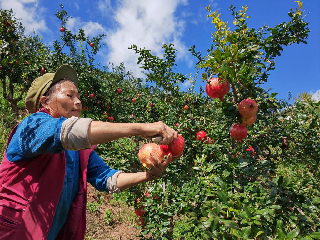 9月19日,會(huì )理市彰冠鎮魁閣村,石榴采摘場(chǎng)景。新華社記者江毅 攝
