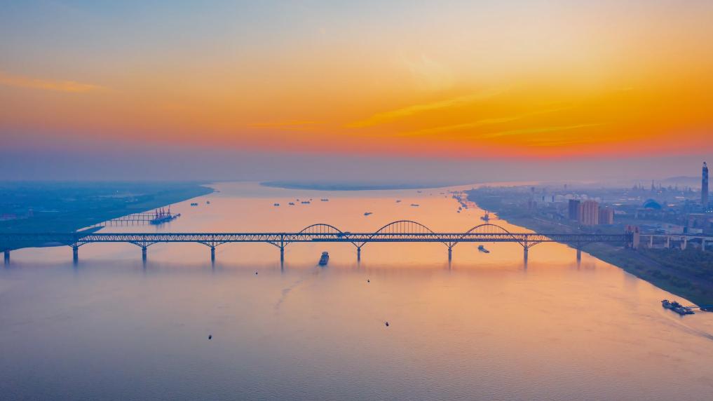 九江舊名潯陽(yáng),長(cháng)江流經(jīng)九江段被稱(chēng)為潯陽(yáng)江。秋高氣爽,俯瞰潯陽(yáng)江畔,秋水長(cháng)天一色,兩湖長(cháng)堤相印,風(fēng)景美如畫(huà)。