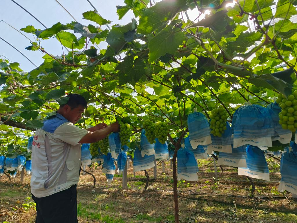 金秋時(shí)節,山東省濰坊市昌樂(lè )縣營(yíng)丘鎮朝陽(yáng)官莊村的葡萄迎來(lái)了豐收季,果農們忙著(zhù)采摘一串串成熟的陽(yáng)光玫瑰葡萄?!拔曳N的‘火山葡萄’粒大、果甜,每斤價(jià)格比同品種葡萄貴兩元多,很多收購商慕名過(guò)來(lái)采購?!狈N植戶(hù)田開(kāi)春說(shuō),今年他種了110畝葡萄,畝均純收入2萬(wàn)多元。