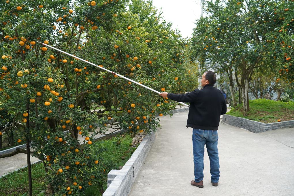段家河鎮李家莊村村民李廣在家門(mén)口采收獅頭柑。新華社記者邵瑞 攝