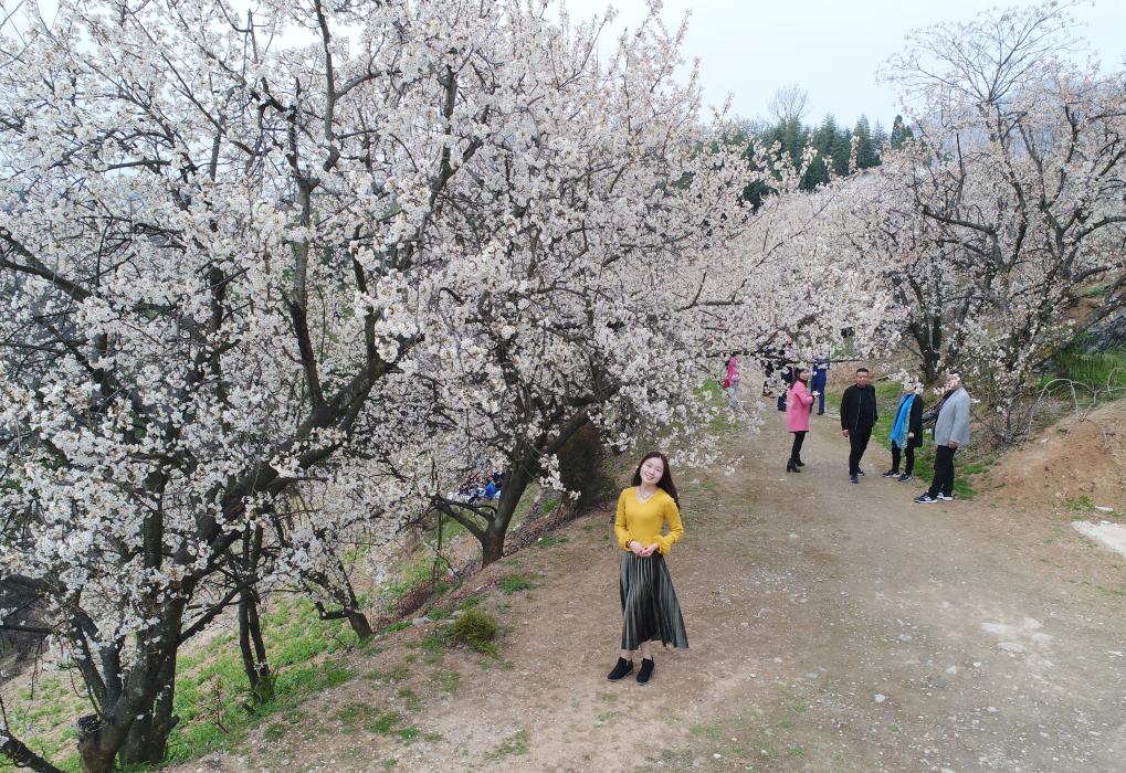 段家河鎮薛家灣社區的春日景色吸引游客拍照游覽。新華社記者邵瑞 攝