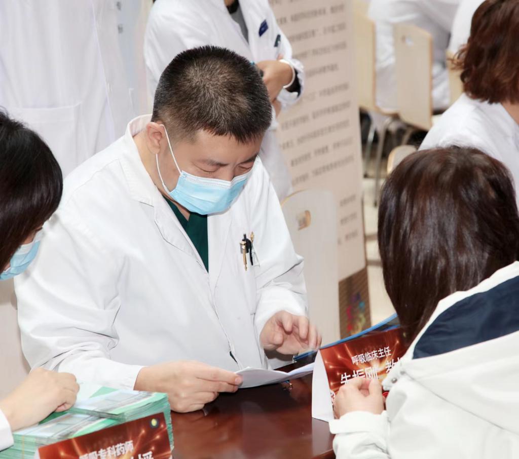 天津中醫藥大學(xué)第一附屬醫院呼吸科主任醫師朱振剛正在為患者進(jìn)行診斷。(受訪(fǎng)者供圖)