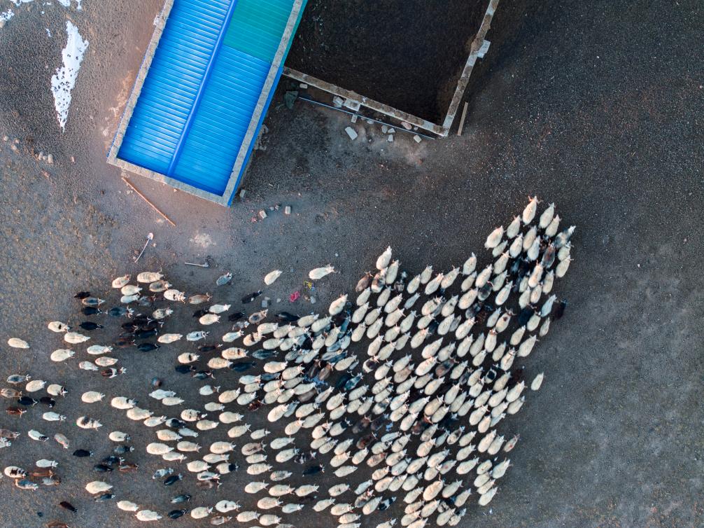 丹增家的羊正進(jìn)入新羊圈(12月18日攝,無(wú)人機照片)。新華社記者姜帆 攝