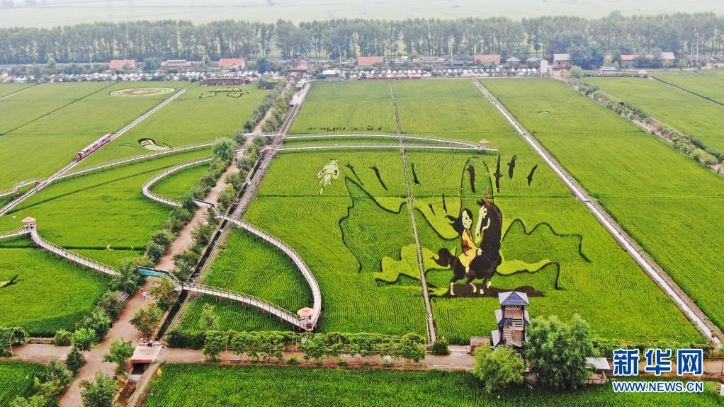 這是8月16日拍攝的稻田畫(huà)《花木蘭》(無(wú)人機照片)。