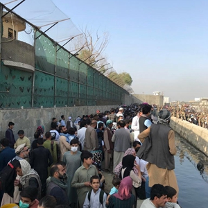 8月22日,大批民眾聚集在阿富汗喀布爾機場(chǎng)外。新華社發(fā)(拉赫馬圖拉·阿里扎達攝)