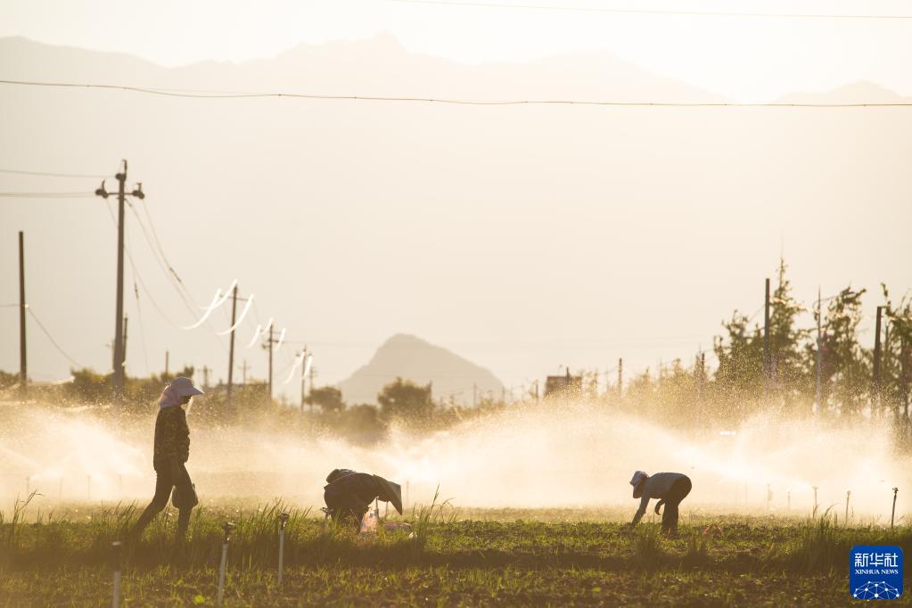 當日,天氣晴好,在湖南省永州市道縣清塘鎮濂溪大洞蔬菜基地,農戶(hù)搶抓農時(shí)在田間勞作。