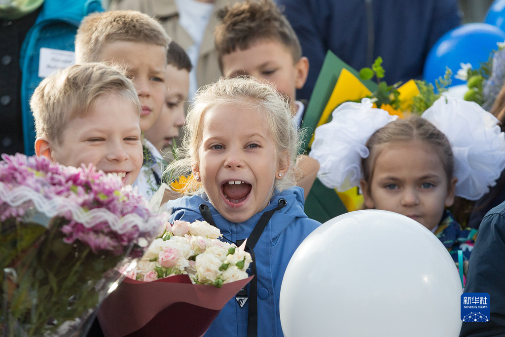 9月1日,俄羅斯圣彼得堡一所學(xué)校的學(xué)生們參加開(kāi)學(xué)日活動(dòng)。