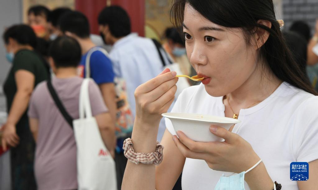 9月5日,參會(huì )者在服貿會(huì )首鋼園區老字號專(zhuān)區品嘗油茶。