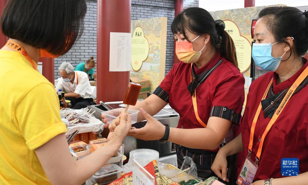 9月5日,參會(huì )者在服貿會(huì )首鋼園區老字號專(zhuān)區購買(mǎi)山楂糕。
