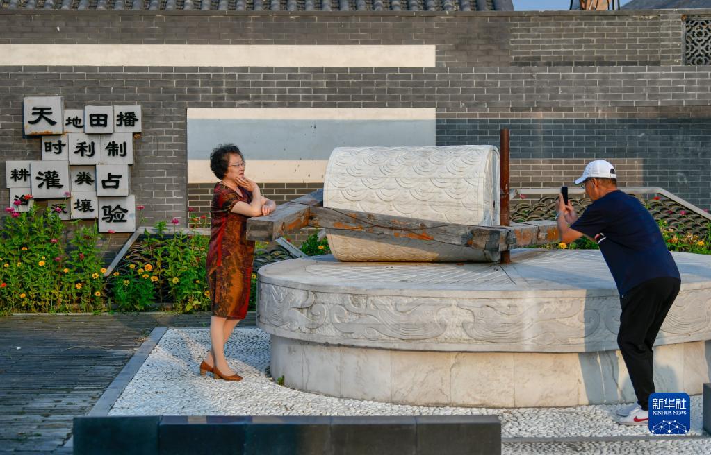 游客在天津市寶坻區黃莊鎮小辛碼頭村的水稻文化園拍照(9月3日攝)。新華社記者 孫凡越 攝