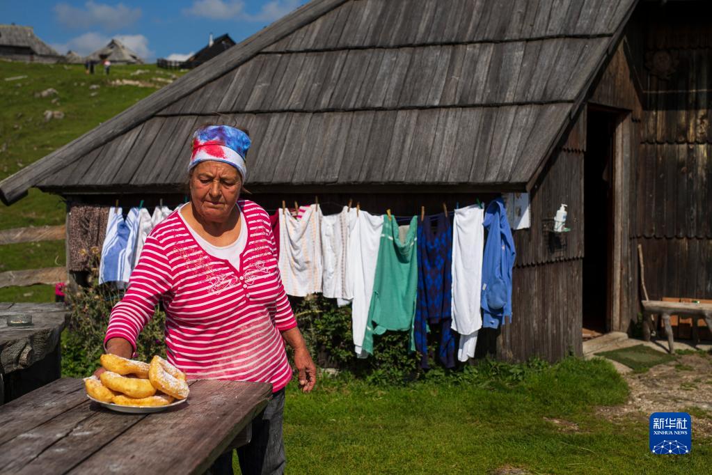 9月8日,斯洛文尼亞維利卡普拉尼那高地的一名牧民將傳統面點(diǎn)“Flancati”端上餐桌。