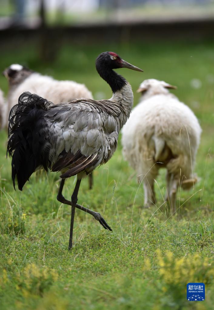 在西藏日喀則市扎什倫布寺院內,一只黑頸鶴與一群放生羊生活在一起,和睦相處。這只黑頸鶴曾因受傷無(wú)法遷徙,被附近的村民送到寺廟院里。如今,黑頸鶴儼然成了羊群的“頭羊”,被當地人稱(chēng)為“牧羊的鶴”。