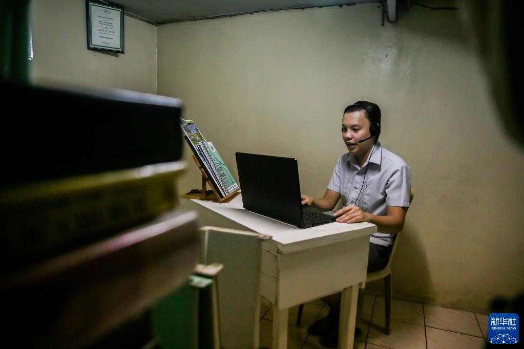 9月13日,在菲律賓馬尼拉,教師卡爾文·埃羅爾·阿爾坎塔拉在2021-2022學(xué)年開(kāi)學(xué)第一天通過(guò)網(wǎng)絡(luò )為學(xué)生上課。當日,菲律賓教育部門(mén)通過(guò)網(wǎng)絡(luò )、電視和電臺等形式開(kāi)啟了新學(xué)年的教學(xué)。