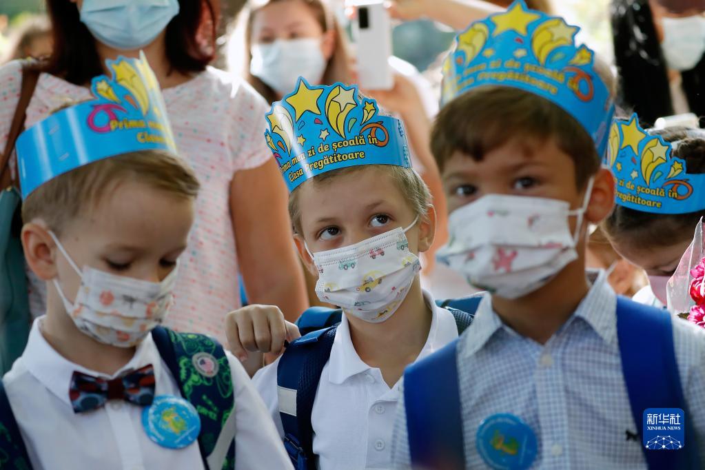 9月13日,在羅馬尼亞首都布加勒斯特,學(xué)生等待新學(xué)期開(kāi)學(xué)典禮。當日,羅馬尼亞全國中小學(xué)開(kāi)學(xué),由于疫情日趨嚴重,政府要求所有人員必須戴口罩。