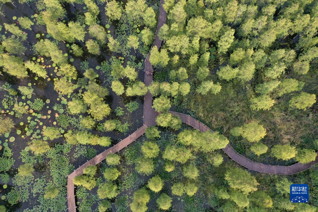 俯瞰池杉林(9月14日攝,無(wú)人機照片)。