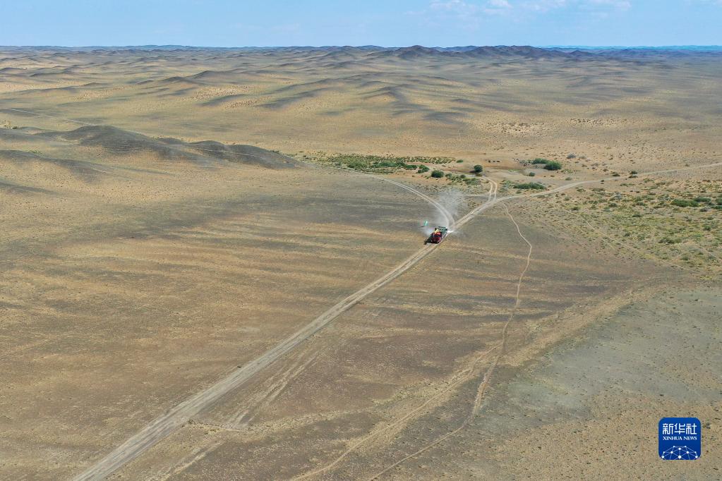 運載野馬的卡車(chē)進(jìn)入新疆卡拉麥里山有蹄類(lèi)野生動(dòng)物自然保護區(9月1日攝,無(wú)人機照片)。