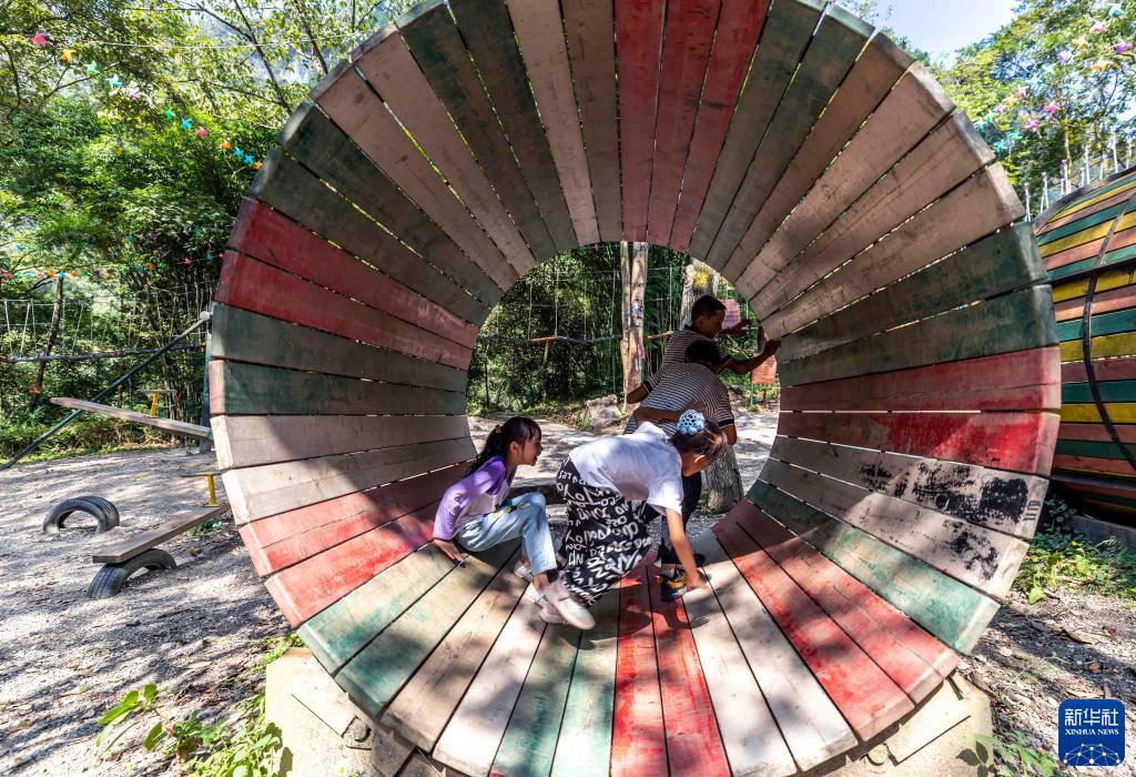 10月2日,小朋友在貴陽(yáng)市開(kāi)陽(yáng)縣南江大峽谷景區游樂(lè )場(chǎng)玩耍。