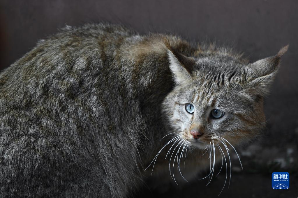 這是5月1日在西寧野生動(dòng)物園拍攝的一只人工救助的荒漠貓。