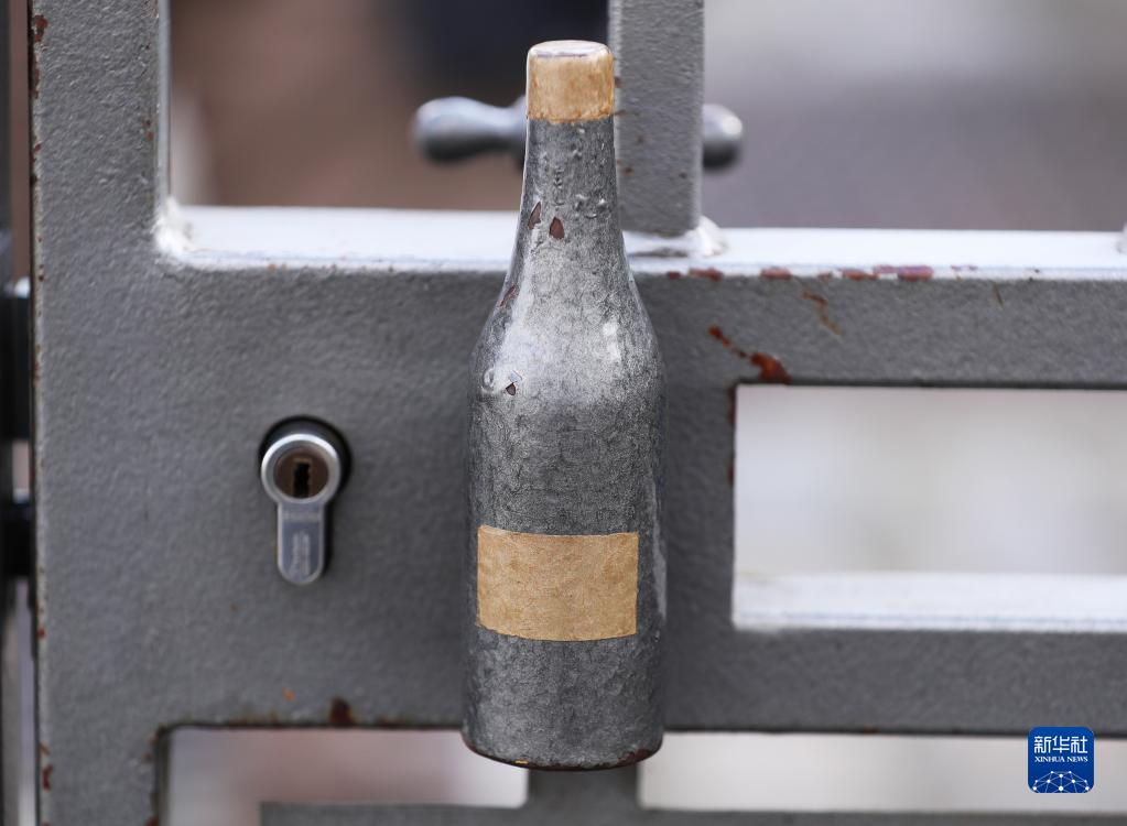 這是10月6日在法國巴黎蒙馬特高地葡萄園拍攝的酒瓶形狀的門(mén)把手。