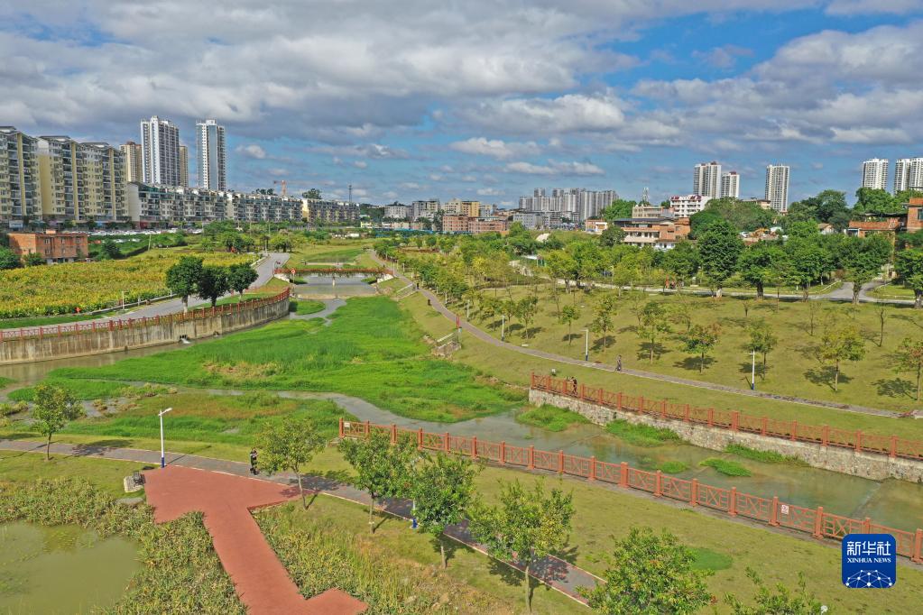 金秋時(shí)節,廣西南寧市沙江河濕地公園草木蔥蘢、水碧花紅,宛如一幅美麗畫(huà)卷。
