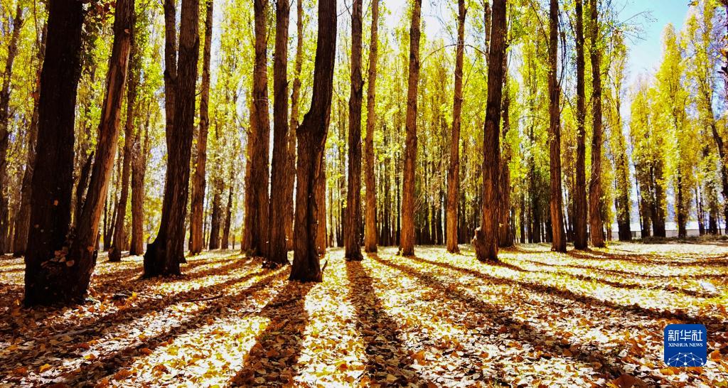 陽(yáng)光透過(guò)拉薩市林周縣邊交林鄉的樹(shù)林(10月16日攝,手機照片)。