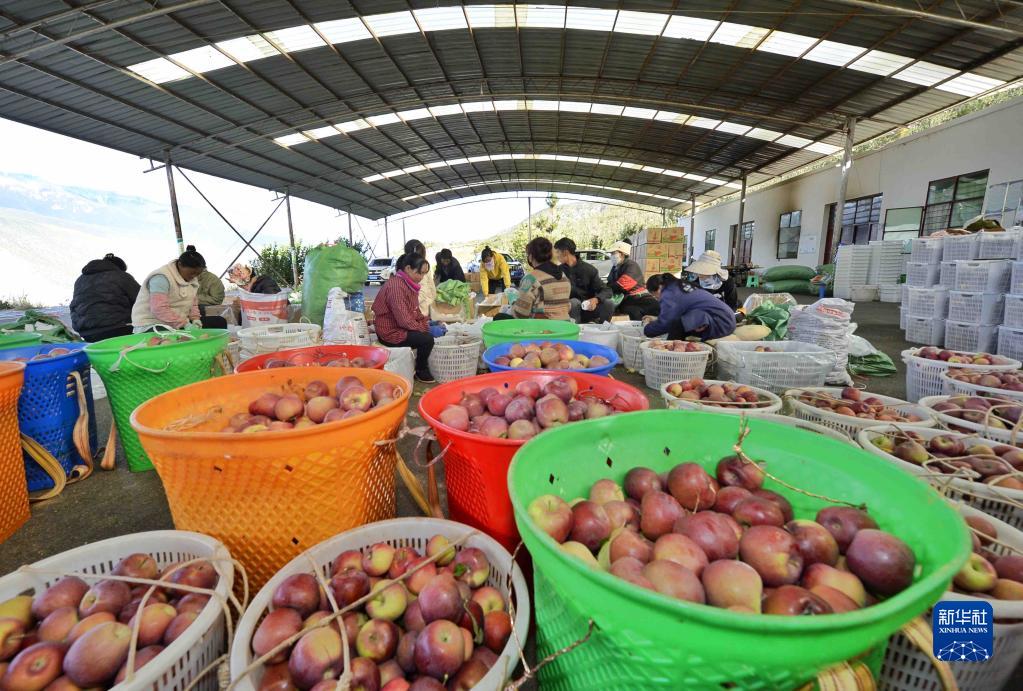 10月20日,在四川甘孜鄉城縣青德鎮,村民們在分揀蘋(píng)果。